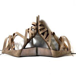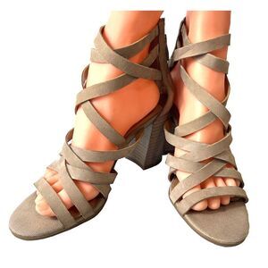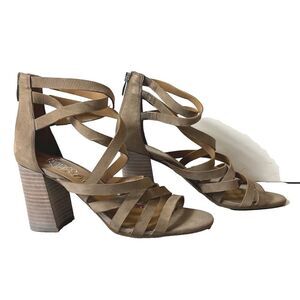 Franco Sarto Womens Sz 8.5 M Strappy Chunky Heels Open Toe Sandals Beige Leather
