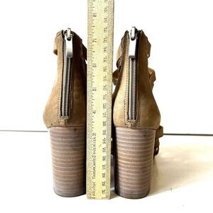 Franco Sarto Women's Size 8.5 M Strappy Chunky Heels Open Toe Sandals Beige Leather