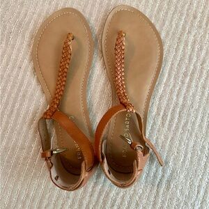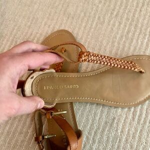 Step into comfort and style with Franco Sarto's tan sandals. Perfect for any casual outing.