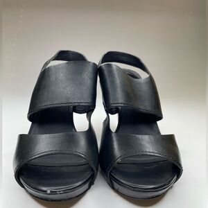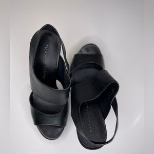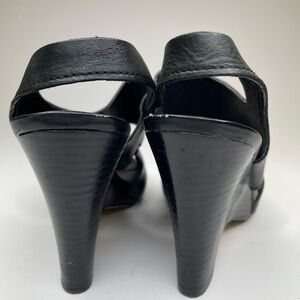 Franco Sarto Women’s Black Leather Wedges Gently used- minor scuffs on toe part Size 7.5