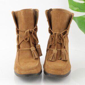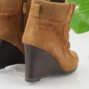 Franco Sarto Womens Westerly Boot Size 9.5 Camel Tan Suede Wedge Lace Up Booties
