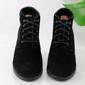 Franco Sarto Womens Weston Boot Size 6.5 Black Suede Wedge Heel Bootie Lace-Up