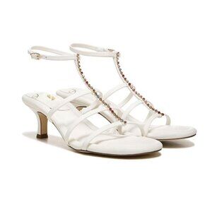 Franco Sarto Womens White Leather Rhinestones Ankle Kitten Heel Sandals Sz 8 New