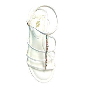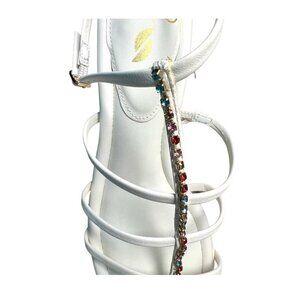 Franco Sarto Womens White Leather Genesis Multi Color Rhinestone Open Toe Ankle Strap Sandals Sz 8 NIB