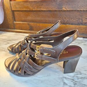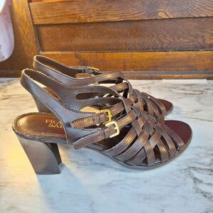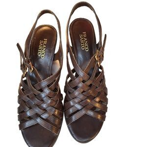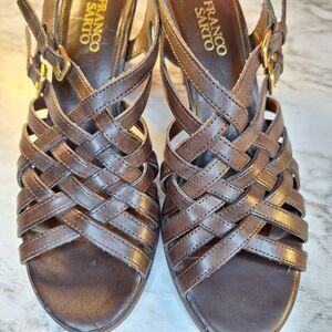 Franco Sarto Womens Woven Leather Sandals Size 8.5M Block Heel Buckles Revelry