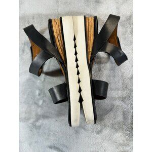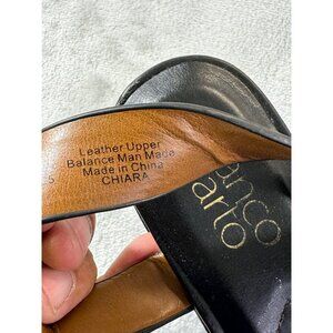 Franco Sarto Women's shoes in size 8. These Chiara strappy sandals are designed with a trendy wedge heel, ideal for any occasion. Crafted from premium black leather, these sandals offer both style and comfort.