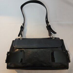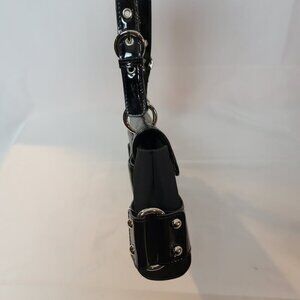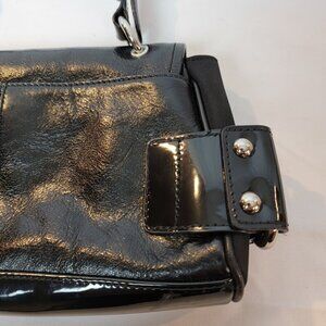 Franco Sarto black leather and patent leather bag with silver hardware