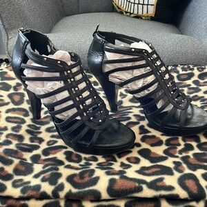 Franco Sarto black leather heeled studded shoe size 8 1/2. Wear on the heels.