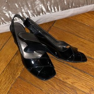 Franco Sarto black patent leather sandals