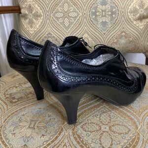 Franco Sarto black vegan patent leather faux lace up Oxford booties 9.5