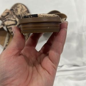 Gorgeous Franco Sarto cross band flat sandal in brown snake skin tone. Great shoe. Lightly used. Great look for summer dresses.