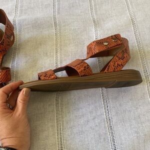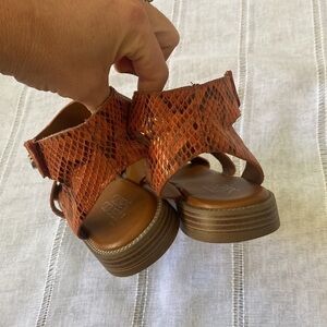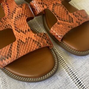 Beautiful burnt orange snake skin print on these Franco Sarto gladiator sandals. Perfect for transitioning into fall! Size 6.5. Man made materials. Pre-loved but very minimal wear. Lots of life left!