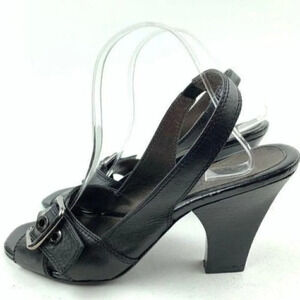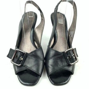Franco Sarto womens heels size 10 flight black leather chunky buckle sling backs