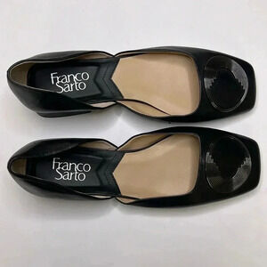 In excellent condition! A low profile pump for easygoing comfort, the Branza from Franco Sarto features a two-piece silhouette that's open at the sides. The square toe is finished with a modern metal ornament.