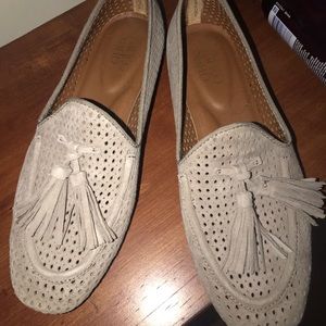 Franco Sarto grey loafers - extremely comfortable and versatile .. bottoms are a little worn but overall good condition
