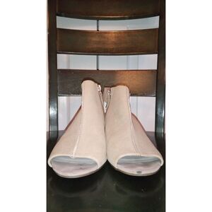 Franco Sarto natural grey brown tone leather upper open toe bootie