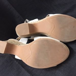 Gorgeous light grey and cork Franco Sarto open toe sling back wedge sandals in a size 9. Only work once. Check out our other name brand items from our closet to yours!!