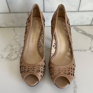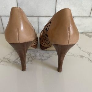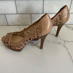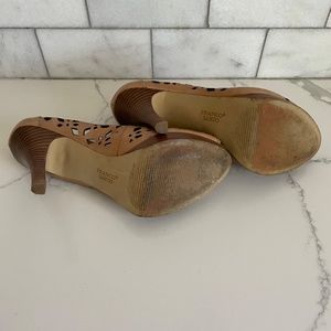 Franco Sarto peep toe leather high heels size 7.5. Gently used. Minor signs of wear on bottom of the shoe.