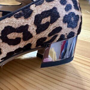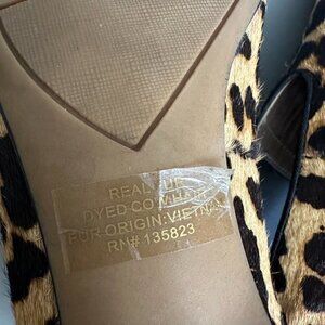 Franco Sarto shoes women 6M Vianna Cow Fur metallic block heel leopard pointy