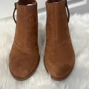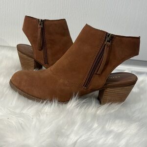 Franco Sarto size 7 1/2 open heel zip up chunky heel booties.