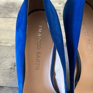 Ladies size 10 stunning blue Sarto Franco high heels. See additional pictures for measurement. These are in great preowned condition. Thanks for looking. Happy shopping.