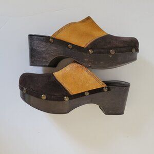 Franco Sarto vintage 90's suede leather patchwork chunky heel wooden clogs 6.5 M