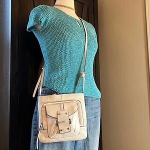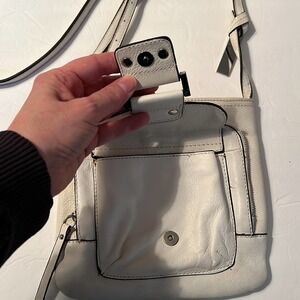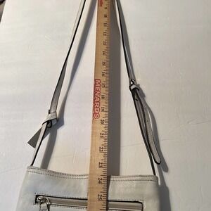 Franco Sarto white leather crossbody zip closure and pockets adjustable strap
