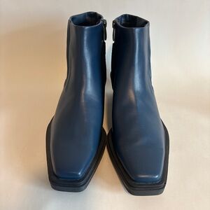 Franco Sarto womens Forta Blue faux leather square wester moto ankle boots 8.5