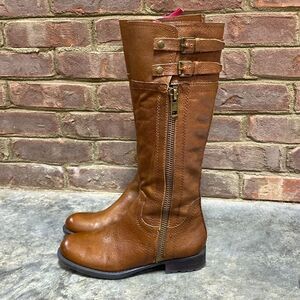 Franco Sarto Pebbled Tan Brown Leather Tall Riding Boot