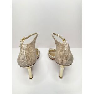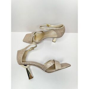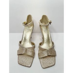 Franco Sarto Sandals Size 8 Gold Leather Ankle Strap Square Toe Evening Heels