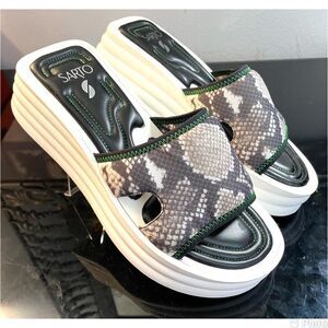 Franco Sarto Vina 2 Comfy 3D Wedge Heel Slide Sandals Roccia Fabric Women’s Shoes Size 10. Leather Footbed Rubber Outsole. Like New.