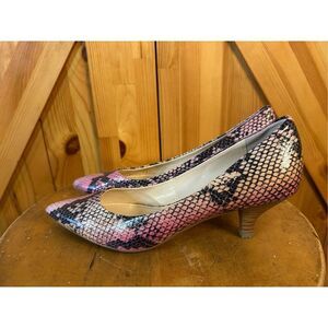 Franco Sarto Women's Pink Cobra Faux Snake Skin Pattern Pump Heels Size 6M minor wear on toe see photos 2” heel