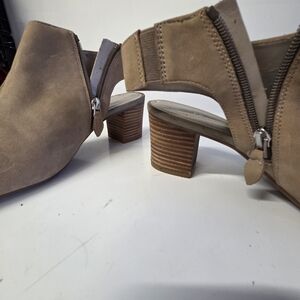 Franco SartoWomen’s Taupe Suede Open-Toe Ankle Sandals – Cut-Out Booties, Size 9