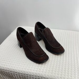 Vintage Franco Sarto Chunky Heels Leather Loafer Brown Womens Size 9M