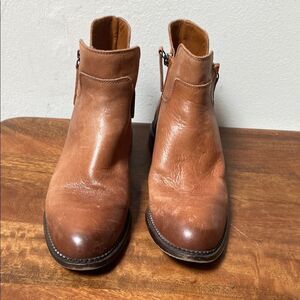 Chic cognac leather booties by Franco Sarto. Versatile and elegant design.