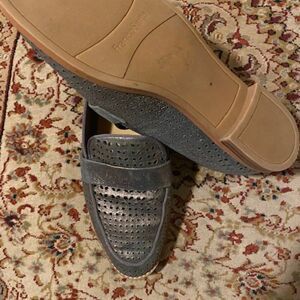 Franco Sarto Hudley Pewter Silver Metallic Perforated Loafers, size 9 1/2