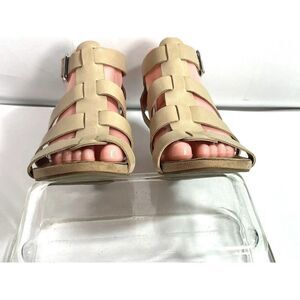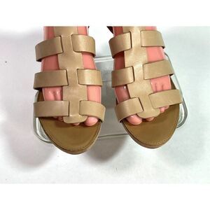 Franco Sarto Women's Tan Gladiator Wedge Sandals Size 8 M Deena T Strap Buckle. Very good pre-owned condition. Small dark mark on side of strap...see photo of metal pointer. Comes from smoke free environment.