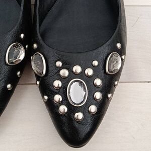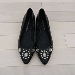 Franco Sarto Women's Regal Rhinestone Embellishments Pinted Toe Ballet Flats Black 8.5M
