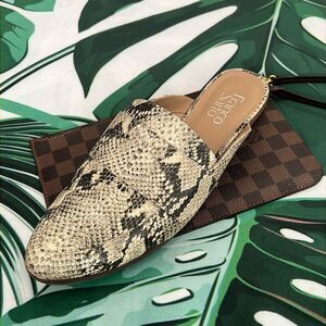 Franco Sarto cream and gray snake slide loafers excellent condition no damage