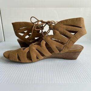 Franco Sarto Lace Up Wedge Sandals Tan Size 9.5 Summer