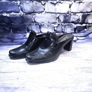 Franco Sarto black leather chunky heel mule shoes