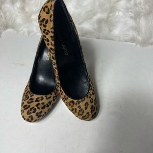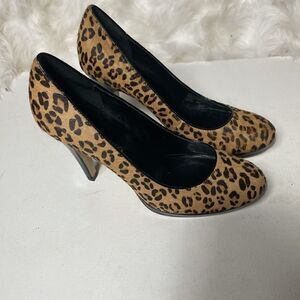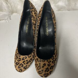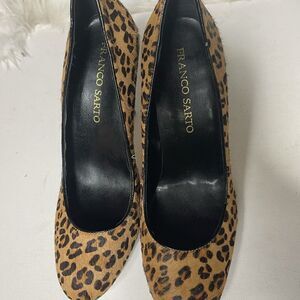 Franco Sarto leopard prints calf hair round toe heels size 8 M pre owned in good used condition normal wear no tear clean see all pictures any questions please message.