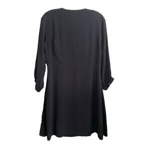 New with tags Frank and Oak wrap a-line mini dress in black. Wrap style with button closures. V-neck. Mini, short length. 3/4 sleeves. Flowy viscose material. In new condition, missing belt.