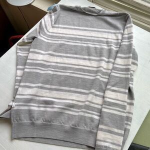 Frank And Oak Merino Wool Crewneck Long-Sleeve Sweater Light Grey Stripe - SZ M