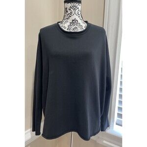 Frank & Eileen Anna Long Sleeve Capelet Top Triple Fleece M Black Minimalist