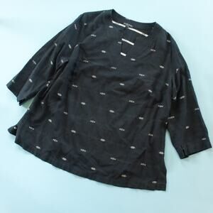Frank & Eileen Barry Black Raw Hem Button Front Chambray Top Size Small