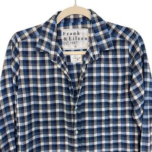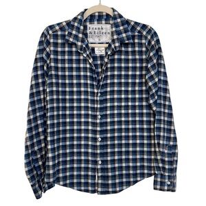 Frank & Eileen Barry Cotton Check Flannel Shirt Blue Small Casual Capsule Spring