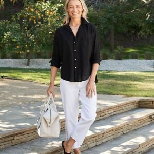 Frank & Eileen Barry Cotton Voile Button Up Black XXS