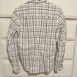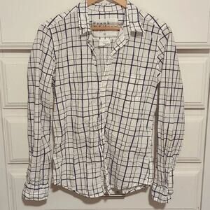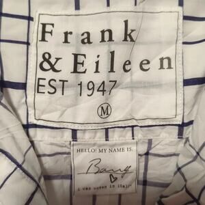 Frank & Eileen Barry Crinkle Windowpane Button Down Shirt Medium White Blue