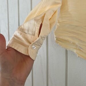 Stylish butter yellow button-up shirt. Perfect for casual outings.